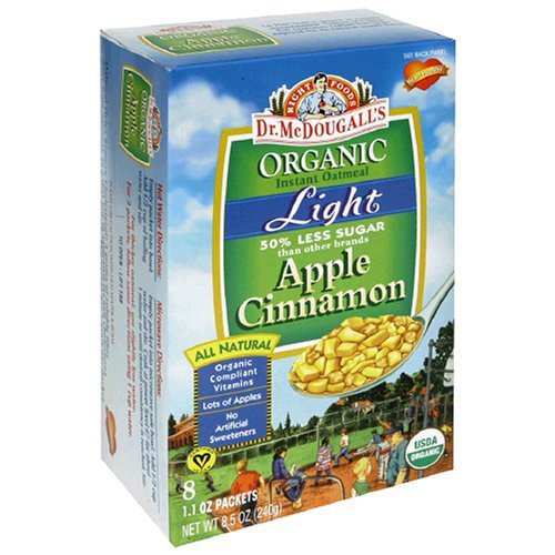 Dr. McDougall’s Apple Cinnamon Organic Light Oatmeal has 50% less sugar than other leading brands. It’s loaded with delicious chunky organic apples and flavorful cinnamon. It has just the right sweetness combining tasty organic apples, organic cane juice, and pure LoHan fruit powder. LoHan fruit has been enjoyed in Asia for centuries. It has little or no effect on blood sugar but adds wonderful natural sweet flavor. They are made with no refined sugar or artificial sweeteners.